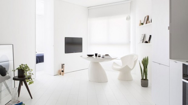 Un petit appartement totalement blanc